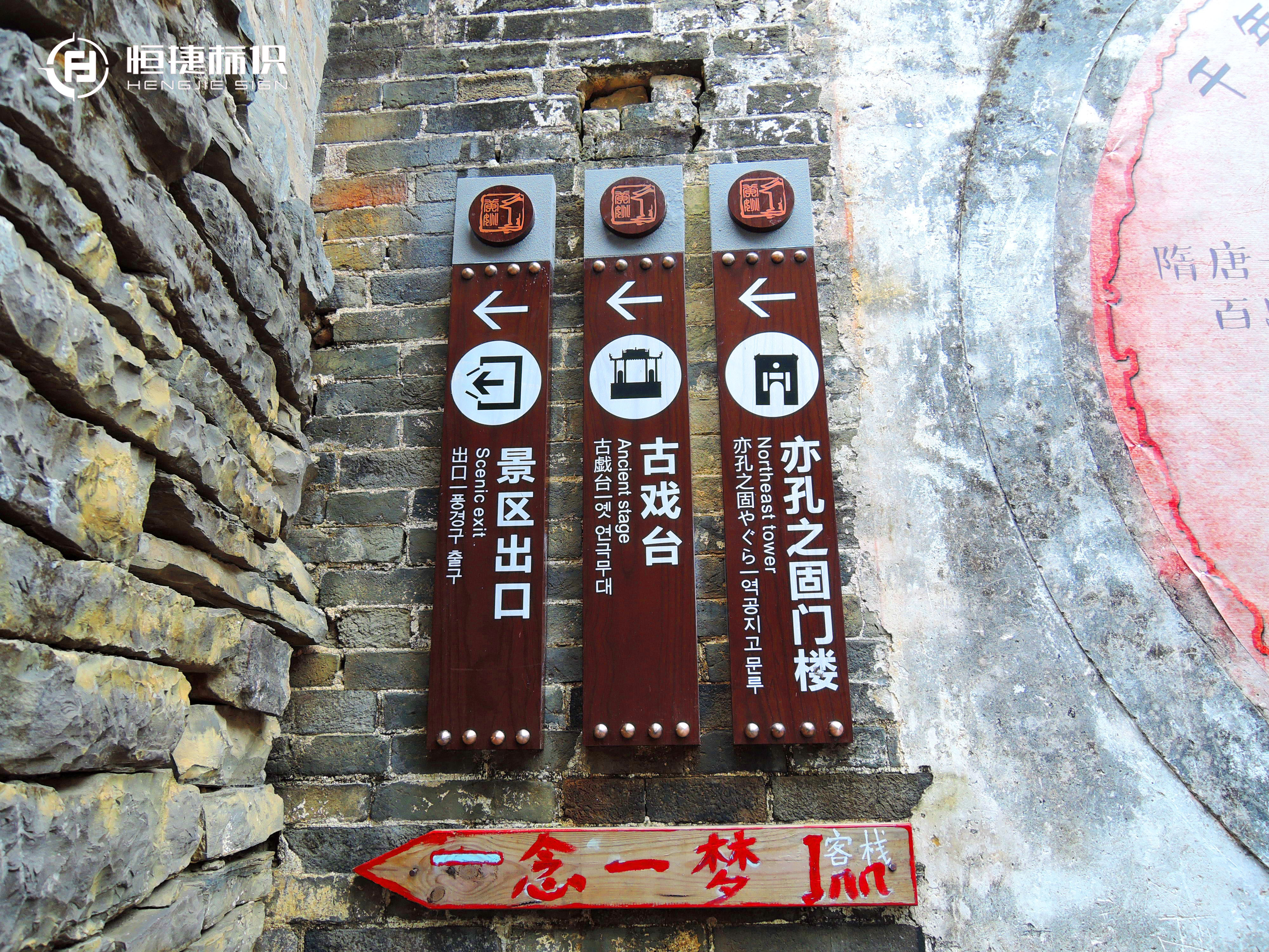 還有那一張張明清時期的香煙、藥品廣告,雖已殘破斑駁,卻仍然固守在-墻上-昭示著古鎮曾經的繁華與喧囂。穿過金德街就是迎秀街,經過街巷相連處的拱門時,細瞧一下就會發現青石板上有碗口大小、連成一排的小洞,據說這是當年安放閘門、防御外敵用。